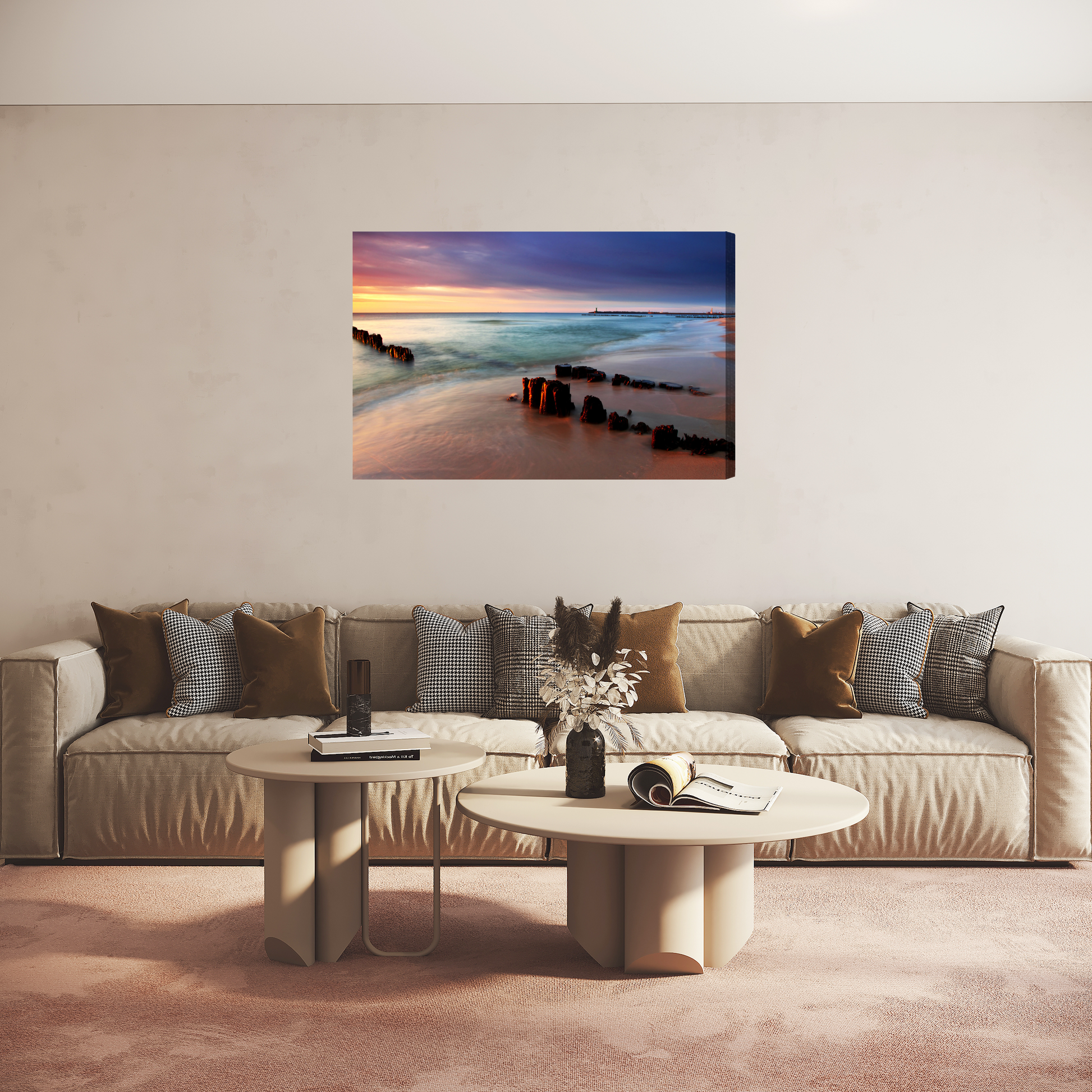 Dzięki stonowanej kolorystyce i nadmorskiej tematyce obraz na płótnie Morze Bałtyckie wspaniale odnajdzie się w salonie, sypialni czy biurze. Wniesie do wnętrza spokój, lekkość i odrobinę wakacyjnego nastroju, niezależnie od pory roku.